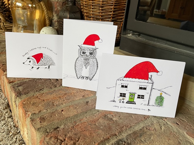 So, what else have I been up to this week? Well lots actually! Firstly, last weekend I had some creative time in the cabin, which I love and designed 2 new Christmas cards, above, which have now come back as samples from the printers. For some reason they always look better when they are printed up as cards, Jean at my local print shop in Holmfirth does an amazing job!