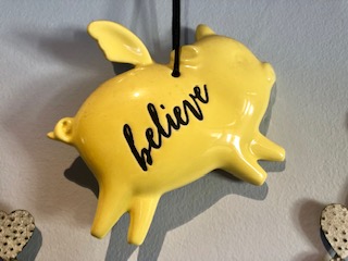 Find house accessories with you word on, like cushions or decorative pieces, eg Joy, Believe, Happy, Magic are all often used