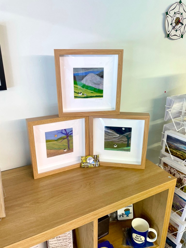 And finally, another local village that I love is Denby Dale, famous for the largest pies, the viaduct and all-round lovely country village. Here, there is a unique shop called Utterly Yorkshire that Carole and her family took over last year. If you have Yorkshire loving folk in your family or friends, then this is the shop for you! There are lots of unique county gifts on offer, including a selection of my needlefelts too, which of course depict Yorkshire landscapes and felt like another great fit for this work!