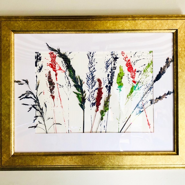 I’ve since developed a new technique, creating grasses prints and then adding in some of the actual, painted grasses to create a 3D element and people seem to like them! I collect the grasses from the fields and woods around me, I’m really lucky to live in a beautiful countryside village, and my daily walks have been my saviour, during the long ‘shielding’ version of lockdown.